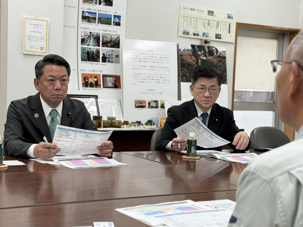 中道の庄子賢一衆議院議員(元農林水産大臣政務官)とうるま市・ゆがふ製糖さんの本島唯一の製糖工場を視察しました。